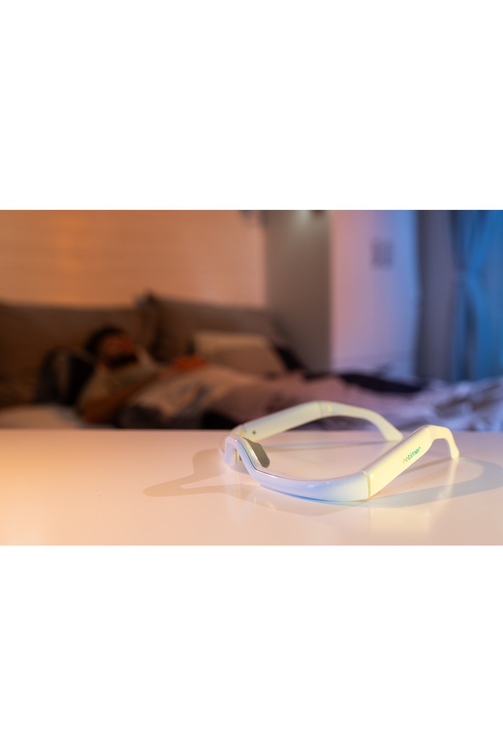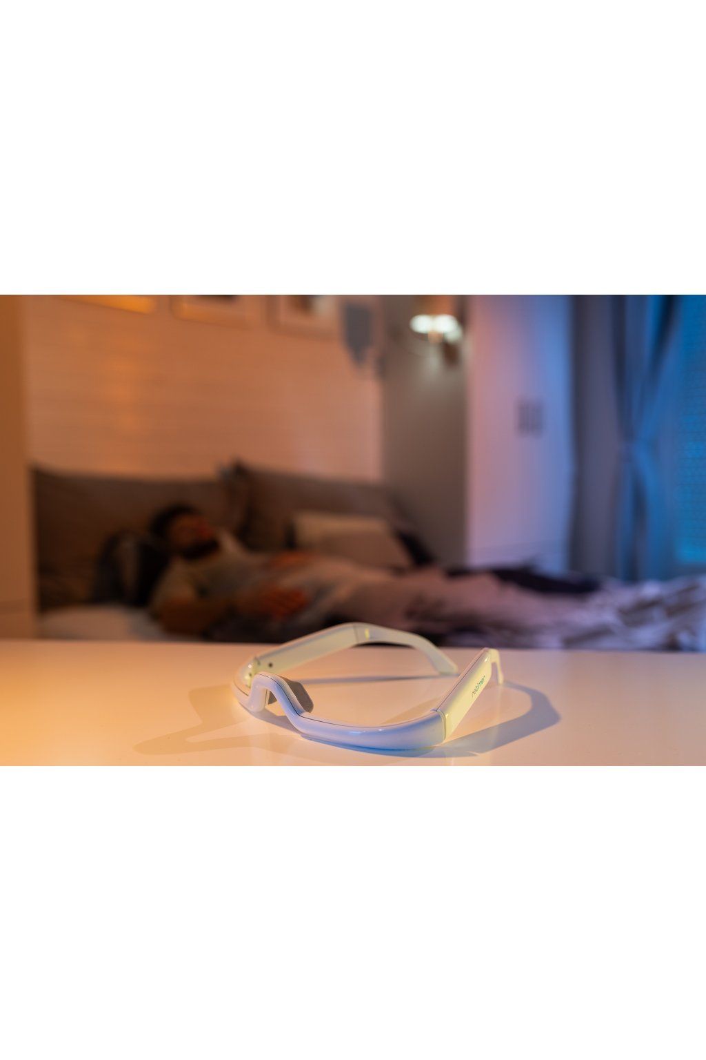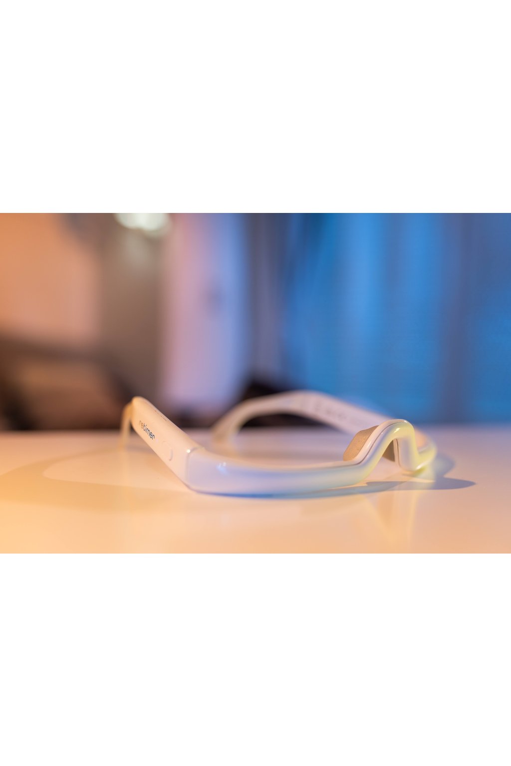Okuliare na svetelnú terapiu svietia po zapnutí trvalým svetlom, ktoré je umiestnené v oblúku okuliarov.